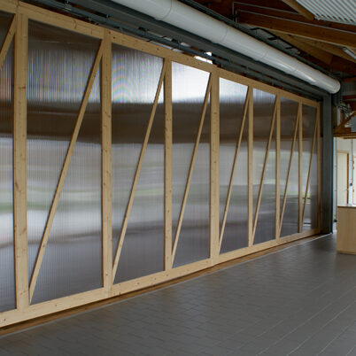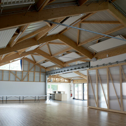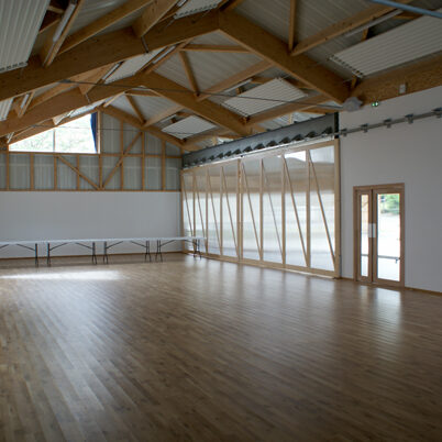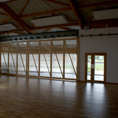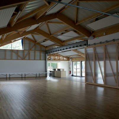 Bâtiment à l’architecture moderne, avec son hall d’entrée et son bar, 1 salle secondaire pouvant accueillir une cinquantaine de personnes, 1 cuisine équipée, et sa salle principale avec scène pouvant accueillir 300 personnes. Lieu idéal pour les manifestations des associations locales (soirée repas dansant, loto, spectacle) et des soirées privées (mariages…).